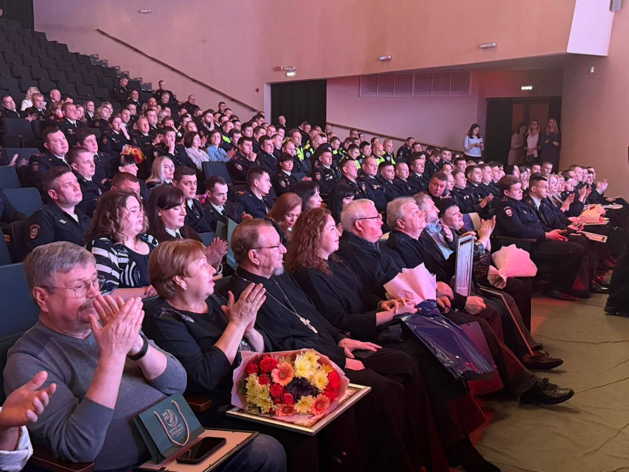 Торжественное мероприятие, посвященное Дню сотрудника органов внутренних дел, состоялось 7 ноября в ДК «Яуза». С профессиональным праздником сотрудников УВД поздравил клирик храма Святой Троицы села Троицкое священник Владимир Логвин. Начальник Межмуниципального управления МВД России «Мытищинское», полковник полиции Николай Жуков с благодарностью принял поздравления и выразил надежду на продолжение уважительного и благотворного сотрудничества.