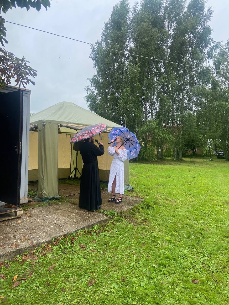 Несмотря на дождь и непогоду, благодарные зрители с радостью и тепло приветствовали артистов. Песни о Родине, любви, вере исполнили Илья Шаров, Мария Шарова, Даниил Шаров и Ксения Родионова. Инструментальная музыка прозвучала в исполнении Анастасии Казьминой.